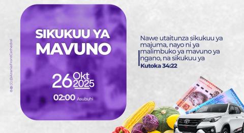 Wapendwa Washarika, tunapenda kuwakaribisha katika ibada maalum ya Sikukuu ya Mavuno kwa mwaka 2025 itakayofanyika katika viwanja...